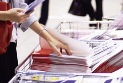説明会や展示会などのブースは、限られたスペースをいかに効果的な装飾で仕立てられるかにより、明確な他社との差が生み出されます。テーブルクロスはブース内や受付、ステージ上などを装飾する筆頭として活用されています。
