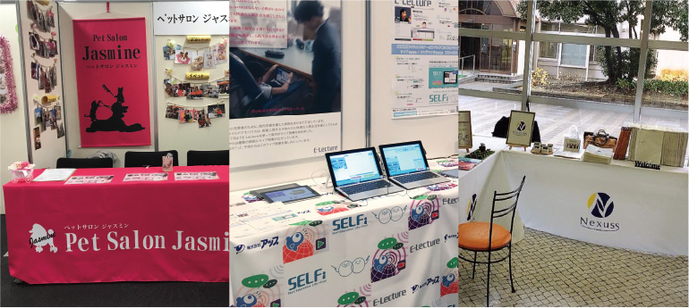 テーブルクロスはブース内や受付、ステージ上などを装飾する筆頭として活用されています。