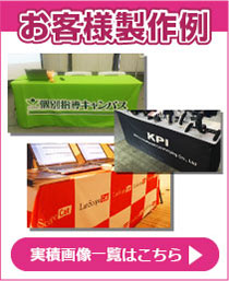 テーブルクロスは展示会・説明会などで、来場者の足を引きとめるきっかけとなるアイテムとして幅広い業界のお客様よりご好評を頂いております。