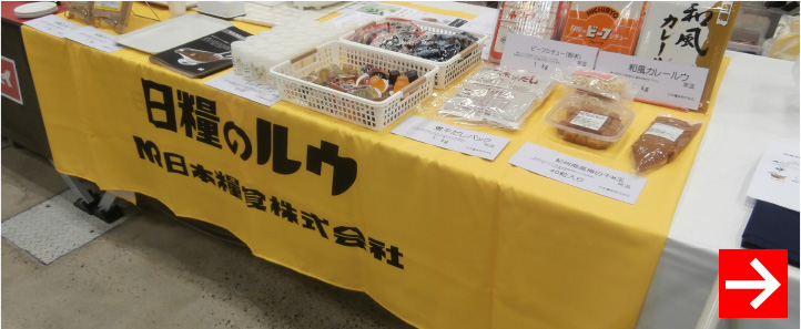 ブース内スタッフと来場者のコミュニケーションの場であるテーブルにインパクトあるキャッチコピーや商品写真がプリントされたテーブルクロスをご用意するだけで、目に触れる機会も多くなり、効率の良い販促が行なえます。 -