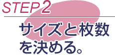 続いて、テーブルクロスにプリントするサイズを決めると共に、表現される色数に ついてもご検討ください。