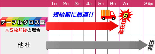 ※ テーブルクロスは、5枚前後のオーダー枚数であればデザイン確定後6営業日程度で出荷可能です。